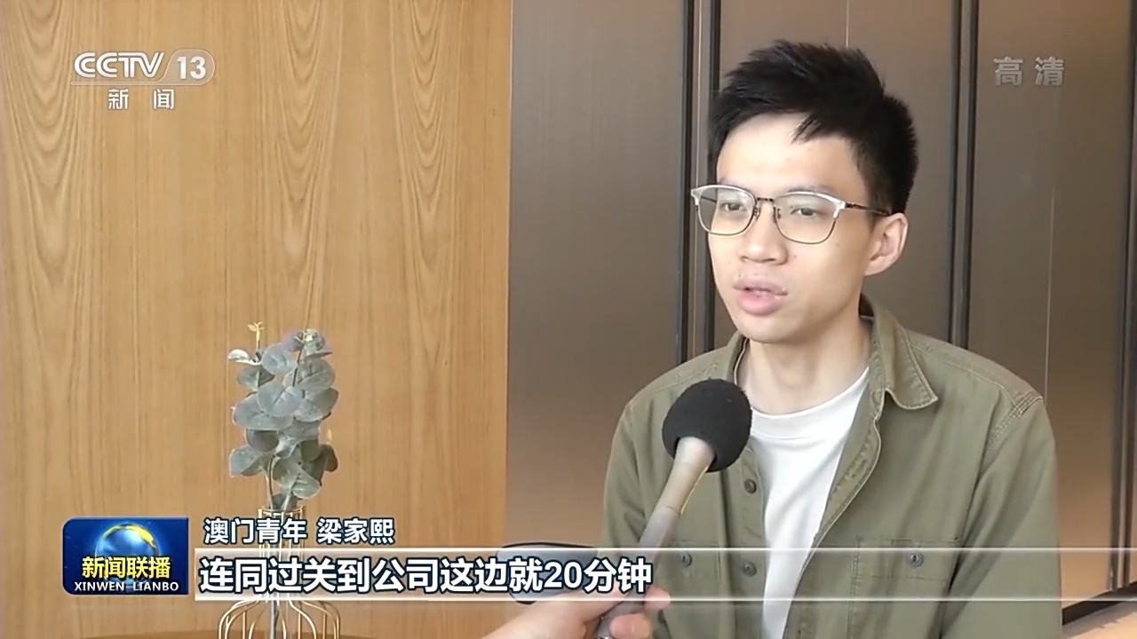 澳门青年 梁家熙:我现在开单牌车连同过关到公司这边,就20分钟。比有些人在澳门工作还要快到达办公场所。过来(横琴)工作生活,包括其他一些医疗方面跟内地人是一样的。我们是非常愿意从澳门出发到大湾区任何一个城市去发展、去生活。