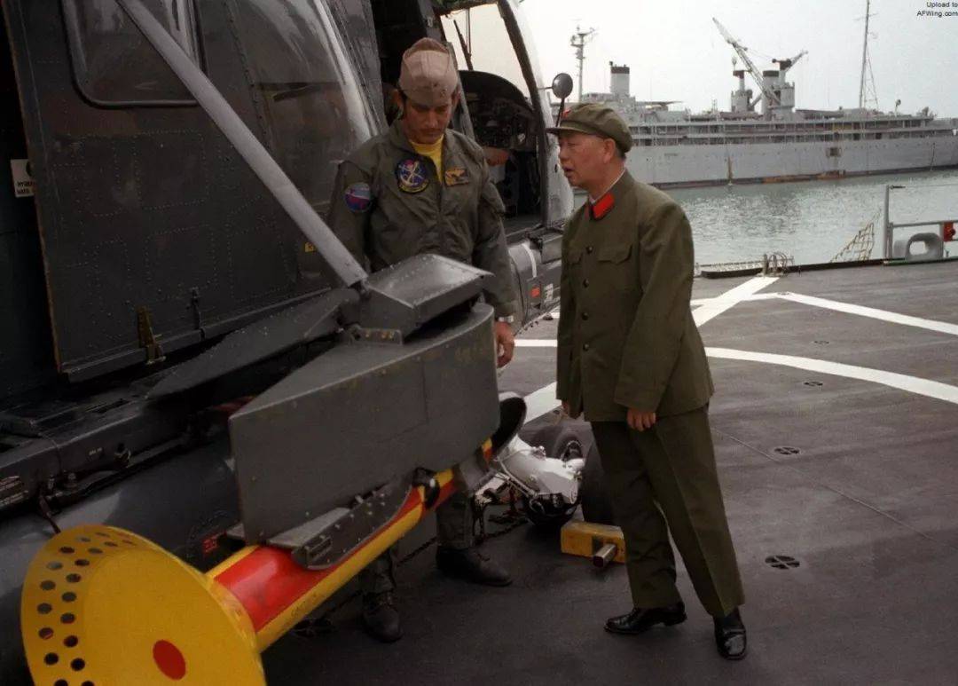 1983年2月,刘华清与南海舰队驻岛水兵交谈