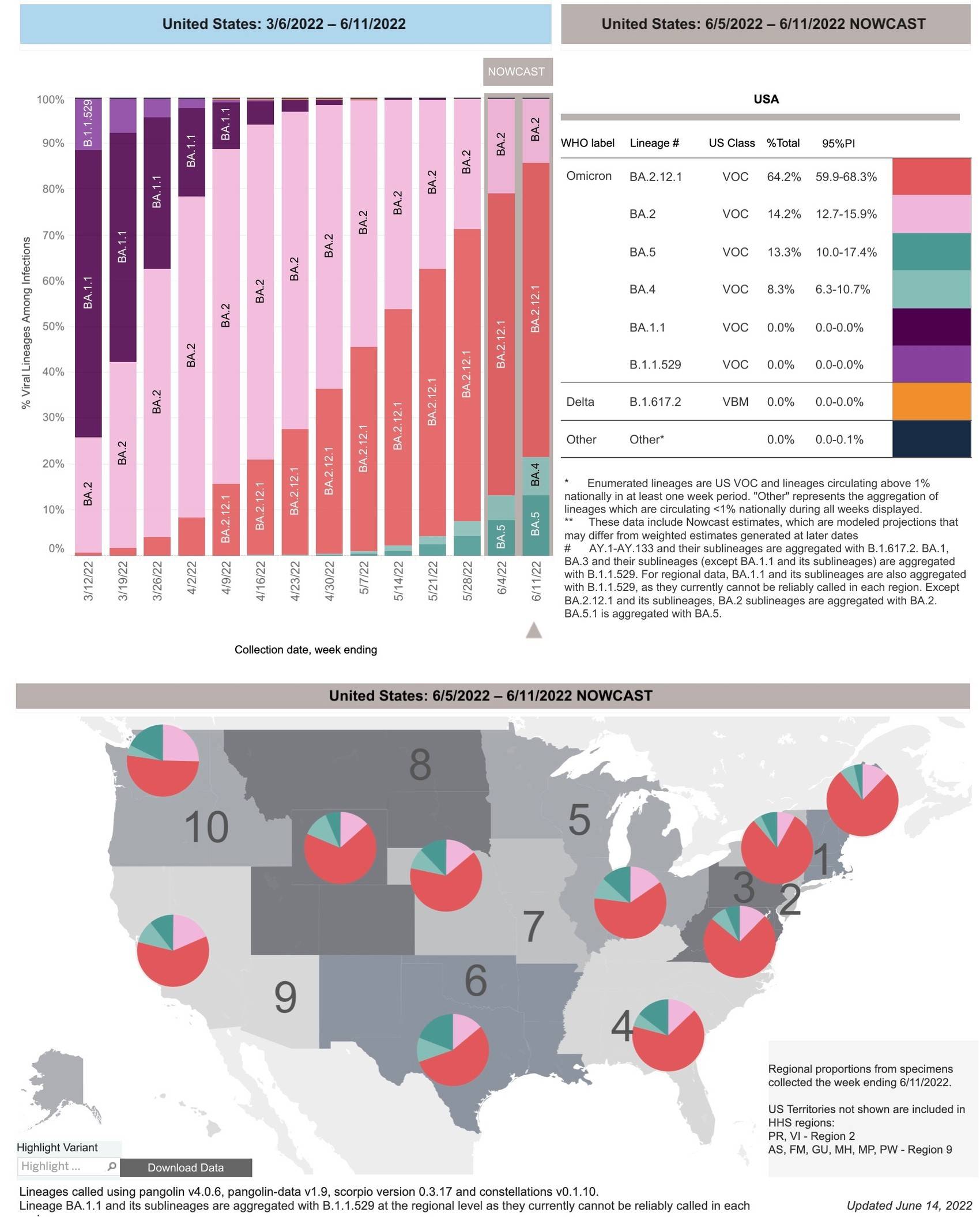 在新冠病毒变异株BA.2.12.1刚刚超过BA.2登上头把交椅,占据美国新冠病例半壁江山不到3周,BA.4、BA.5变异株又开始异军突起,掀起新一轮感染浪潮。