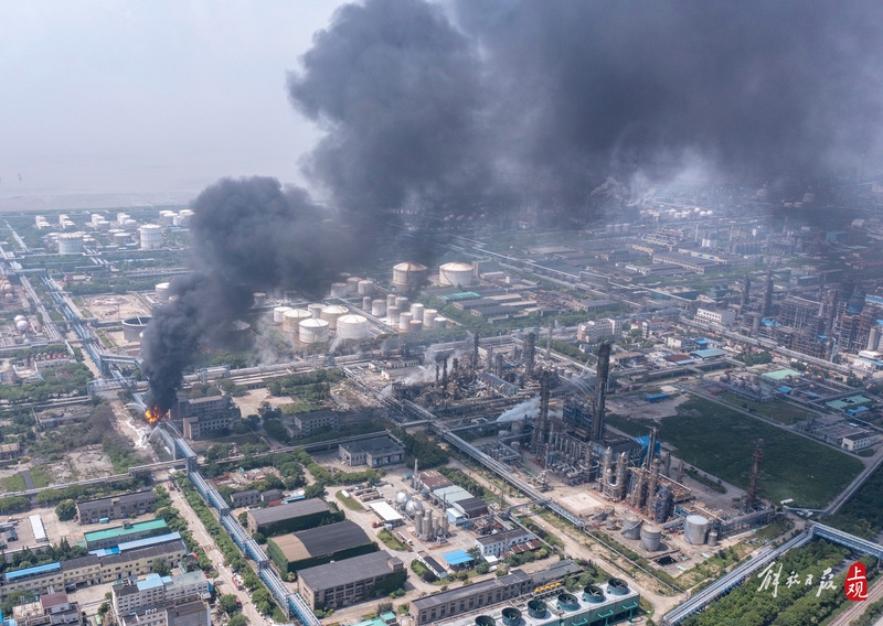 今天11时10分许,记者在现场看到,起火厂区火势得到有效控制,现场消防救援人员介绍,有受损管道仍在进行保护性燃烧。