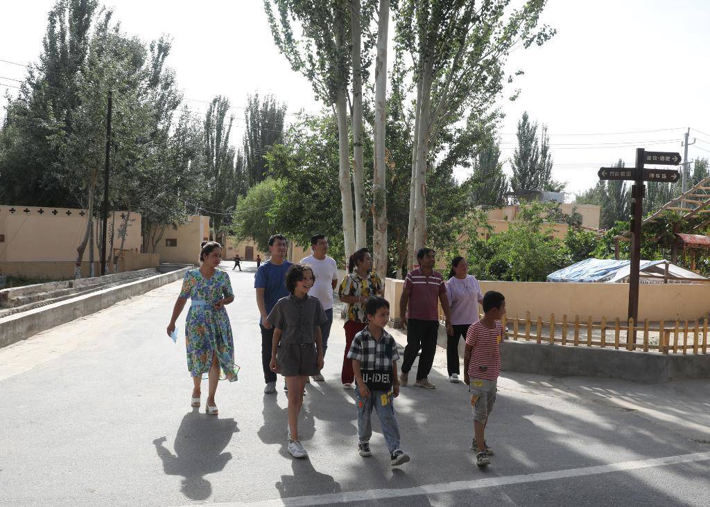 在和田县罕艾日克镇稻香村、和田市古江巴格乡托万特根拉村,道路四通八达,村道两旁家家户户把围墙拆掉或矮化,修葺一新的和田传统“阿依旺”风格民居、葡萄架、菜地、果园尽收眼底,村民们利用自家房屋操办起特色餐饮、农家乐、乐器店、绣坊、民宿等旅游项目。