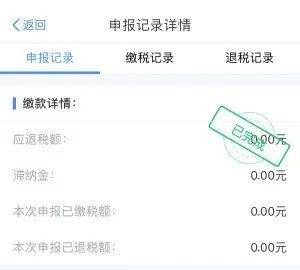 如2021年度综合所得年度汇算申报记录详情显示绿色的“已完成”标签(如下图),说明您已完成申报。