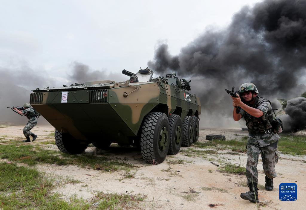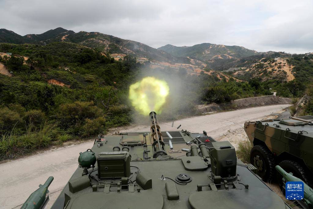 驻香港部队某旅装步一连组织人车协同训练(5月24日摄)。新华社发(易定 摄)
