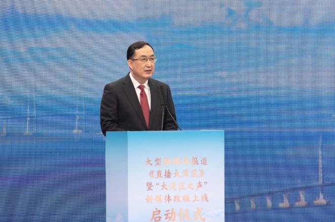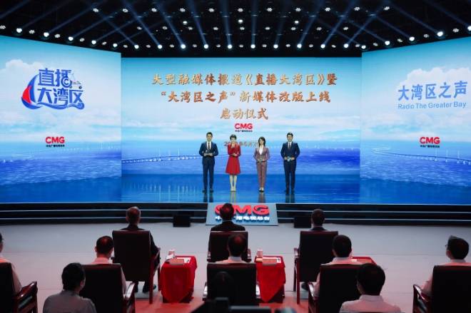 中央广播电视总台大型融媒体报道《直播大湾区》6月20日正式开播,总台“大湾区之声”新媒体同日改版上线。香港特别行政区第六任行政长官李家超、澳门特别行政区行政长官贺一诚以视频致辞的方式表示祝贺。中宣部副部长、中央广播电视总台台长兼总编辑慎海雄,广东省委常委、副省长王曦共同为两个项目启动。