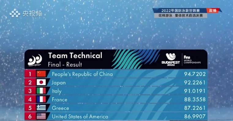 值得一提的是,8位中国姑娘中的王芊懿/王柳懿当天刚以94.5667分拿下了女子双人自由自选预赛的第一名。这也是这对双胞胎姐妹在本届比赛中获得的第二枚金牌。日本队以2.4941分之差获得亚军,意大利队名列第三。