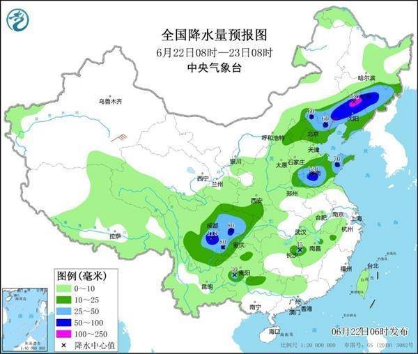 今明两天,主雨带将北抬,江南、华南等地的大范围强降雨终于“偃旗息鼓”,但四川盆地、黄淮、江淮、东北等地又将“接棒”成为强降雨中心。预计,22日至24日,辽宁北部、吉林中部、山东西部、河南东部、安徽中南部、江苏南部、湖北东部、四川盆地南部和中部等地部分地区有暴雨,局地大暴雨,并伴有短时强降水、雷暴大风等强对流天气。