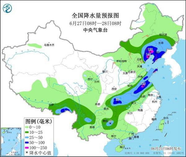 中央气象台预计,明天至28日,西北地区东南部、西南地区东部、华北中东部、黄淮、江汉、东北地区及江南西部和北部、华南西北部等地有一次中到大雨过程,部分地区有暴雨,局地有大暴雨,累计降雨量普遍有50~70毫米,部分地区100~180毫米,上述部分地区并伴有短时强降水、雷暴大风等强对流天气。