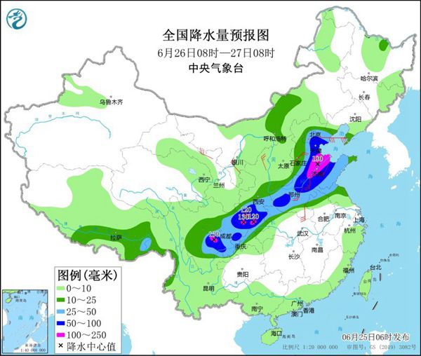 明天,西北地区东南部、华北中东部、黄淮、江汉北部、四川盆地、西藏东部、内蒙古中部等地部分地区有中到大雨,其中,陕西南部、山东中西部和北部、河北东南部、天津、河南西部和东北部、四川盆地东北部和西南部等地部分地区有暴雨,局地大暴雨。