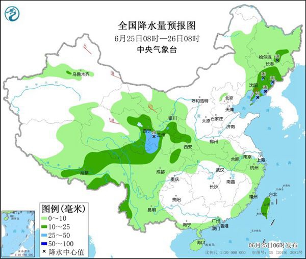 其中今天,黑龙江南部、吉林中南部、辽宁中东部和南部、西藏东部、青海东部和南部、甘肃东部、宁夏南部、陕西中部和西南部、四川北部等地的部分地区有中到大雨,局地有暴雨。