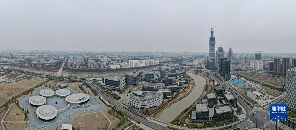 空中俯瞰位于上海市浦东新区的张江智能岛(2月22日摄,无人机照片)。新华社记者 方喆 摄