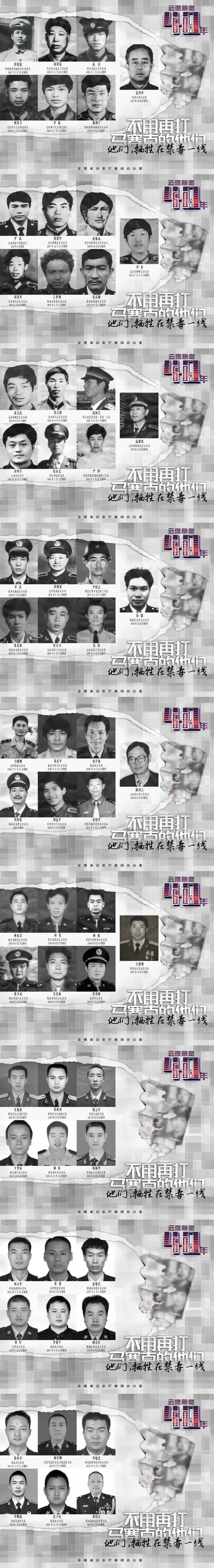 自1982年云南成立专业禁毒队伍以来,云南全省禁毒战线共有60人牺牲,300多人英勇负伤。今天,云南警方集中公布他们的照片,希望大家能永远记住他们,向禁毒英雄致敬!