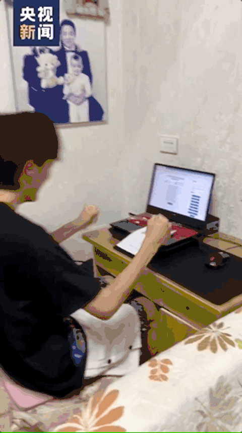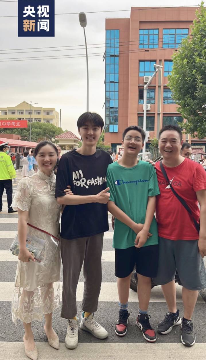 △彭高峰一家在儿子考点外的合影,左二为彭文乐。