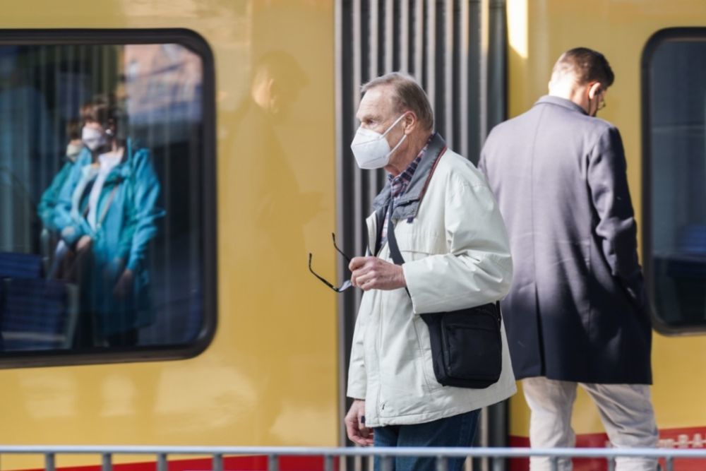 这是3月24日在德国首都柏林一车站拍摄的一名戴口罩的乘客。新华社发(斯特凡·蔡茨摄)