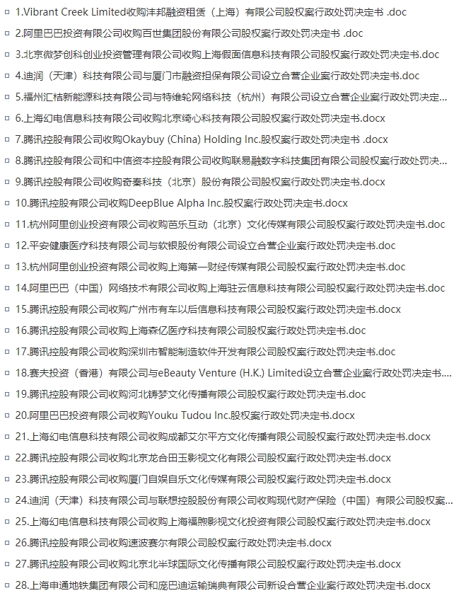 市场监管总局公布一批未依法申报违法实施经营者集中案行政处罚决定书