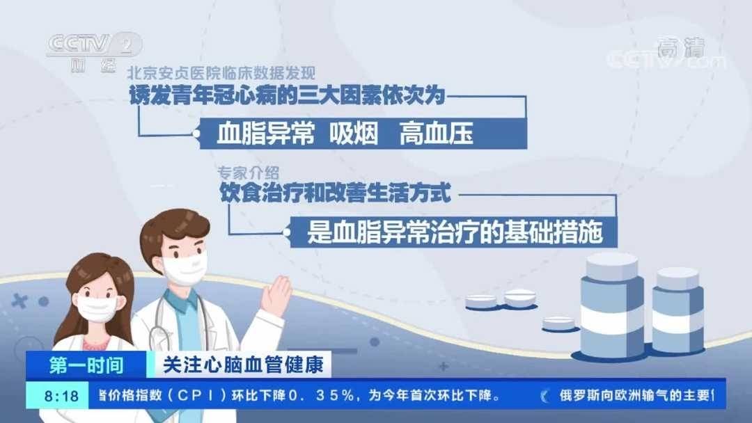 北京安贞医院临床数据发现,诱发青年冠心病的三大因素依次为:血脂异常、吸烟和高血压。