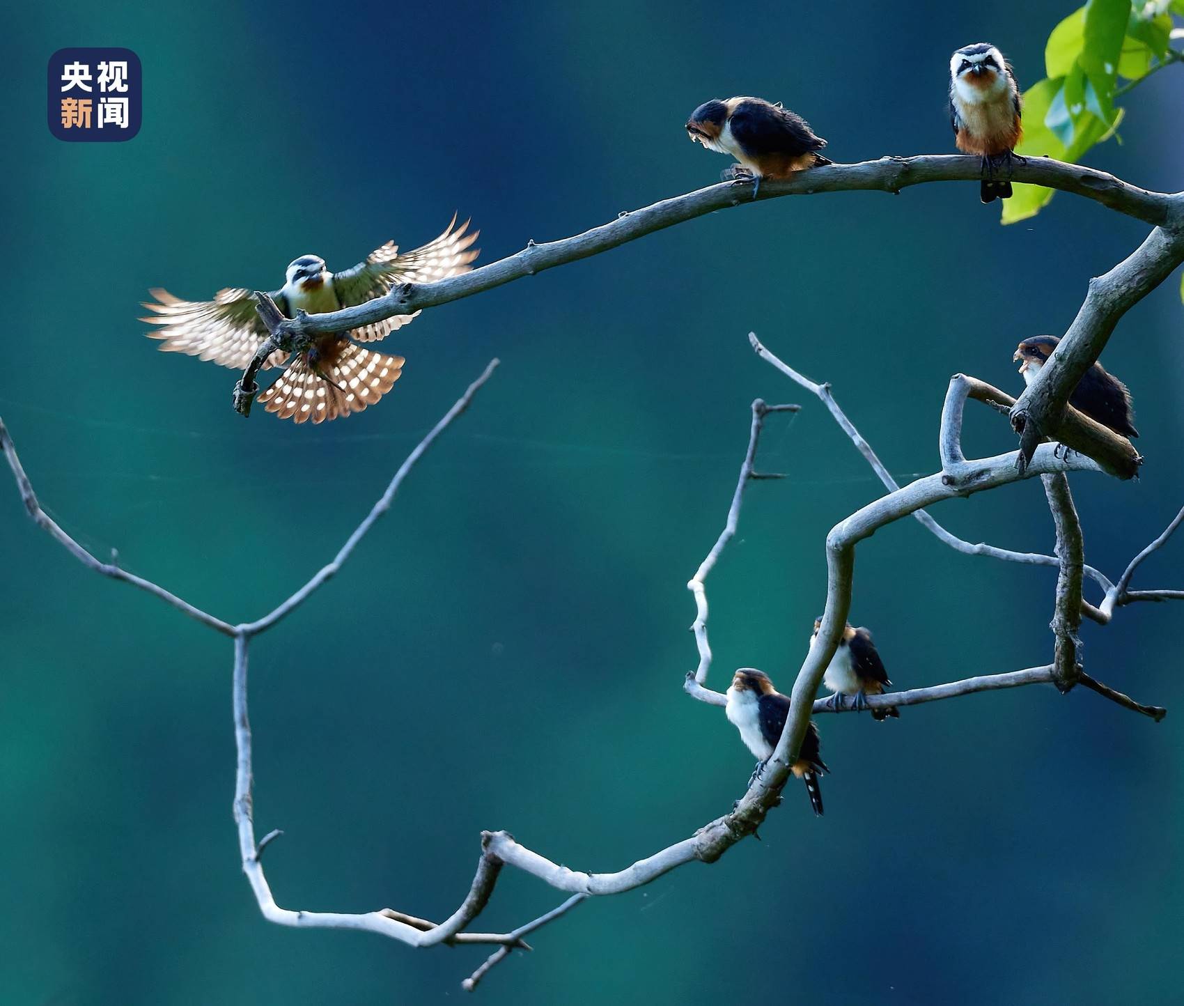 近日,生态摄影师在云南省德宏州盈江县红崩河流域,拍摄到12只国家二级重点保护动物红腿小隼同框的罕见画面。