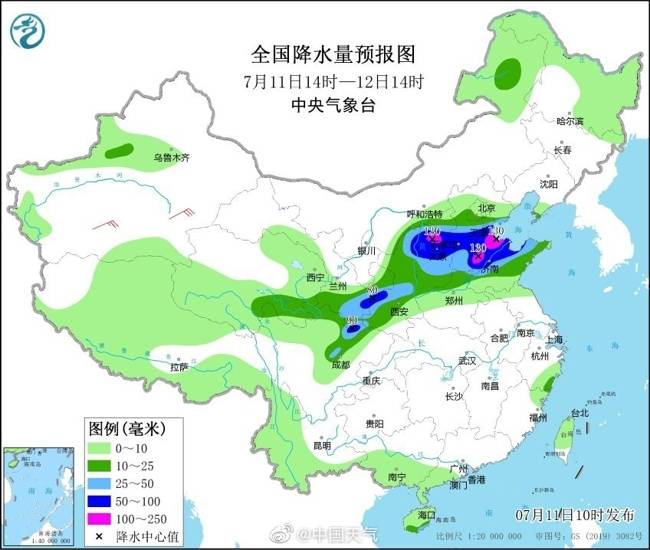 预计7月11日至13日,陕西、四川盆地西部、山西、河北中南部、河南北部、内蒙古东部、山东、辽宁南部等地有中到大雨,部分地区暴雨或大暴雨,并伴有短时强降水,局地雷暴大风或冰雹等强对流天气。中央气象台7月11日08时发布暴雨黄色预警。经综合研判和应急会商,中国气象局于7月11日8时30分进入Ⅳ级应急响应状态。