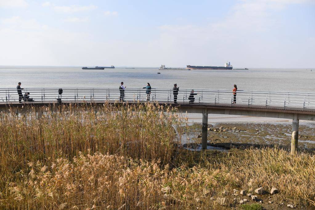 “站在栈道守候,傍晚时分经常看到江豚逐浪。”南通本地的一位摄影爱好者说,江岸美景一年四季各有千秋,春天百花齐放香气怡人,夏季树荫照水绿意盎然,金秋芦苇摇曳宛若仙境,冬日候鸟归来蹁跹起舞。
