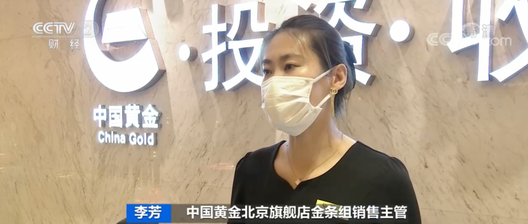 中国黄金北京旗舰店金条组销售主管 李芳:看金条的客流人数比之前上涨了百分之两百,销售量提高了百分之二十。