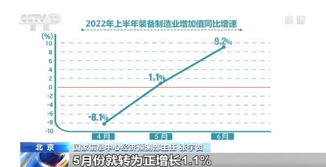 我国工业经济基石的装备制造业同样呈现明显回升态势。4月份装备制造业增加值同比增速还是下降8.1%,5月份就转为正增长1.1%,回升9.2个百分点,6月份进一步回升。6月份,装备制造业增加值同比增长9.2%,比上月加快8.1个百分点。在多重压力下,装备制造业能够从较大幅度下降转为正增长,说明装备制造业的内生动力仍然是非常强劲的。