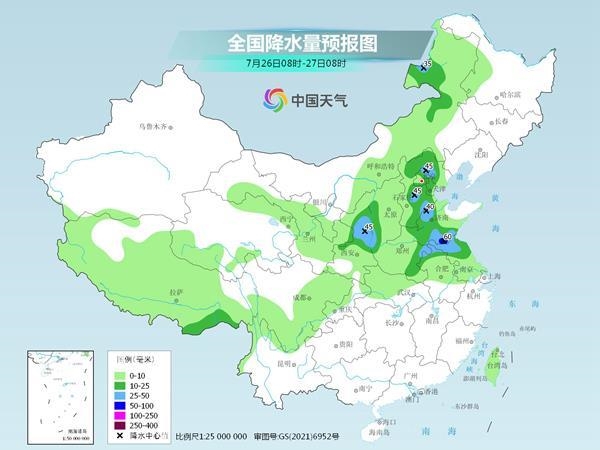 明天,内蒙古东北部和中部、西北地区东北部、河北、华北东部、黄淮东部、河南东部、江淮东部等地部分地区有中到大雨,其中,山东南部、江苏北部等地部分地区有暴雨。