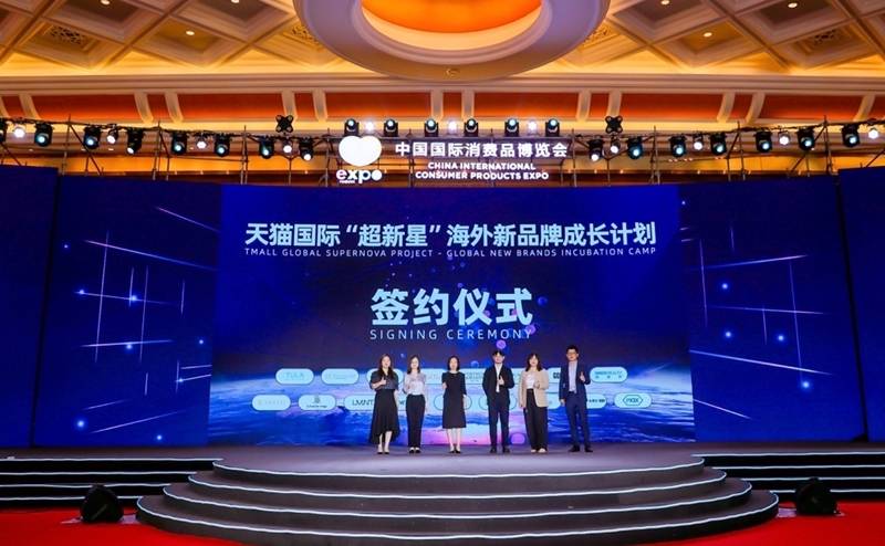7月27日,海南省海口市,第二届中国国际消费品博览会(以下简称“消博会”)上,跨境电商天猫国际正式发布“超新星”海外新品牌成长计划,联合消费品大集团、海外品牌、进口品牌孵化器、优质服务商、投资机构等,共同支持海外新品牌在国内的发展。