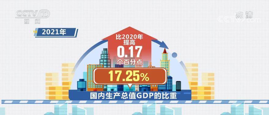 经核算,2021年 “三新”经济增加值为197270亿元,比2020年增长了16.6%,相当于国内生产总值GDP的比重为17.25%,比2020年提高0.17个百分点。