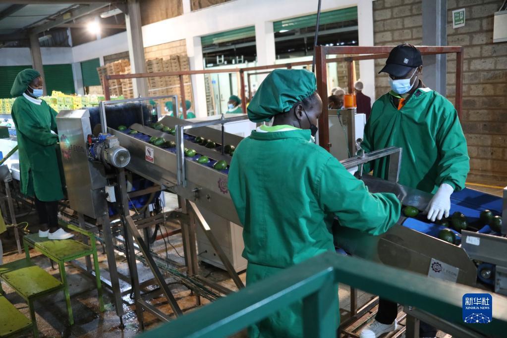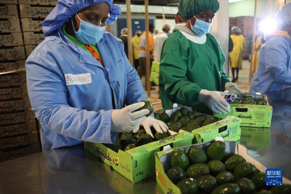 8月2日,在位于肯尼亚利穆鲁镇的桑瑞普工厂,员工为肯尼亚首批正式出口中国的鲜食牛油果集装箱发车做最后的准备。新华社记者 董江辉 摄