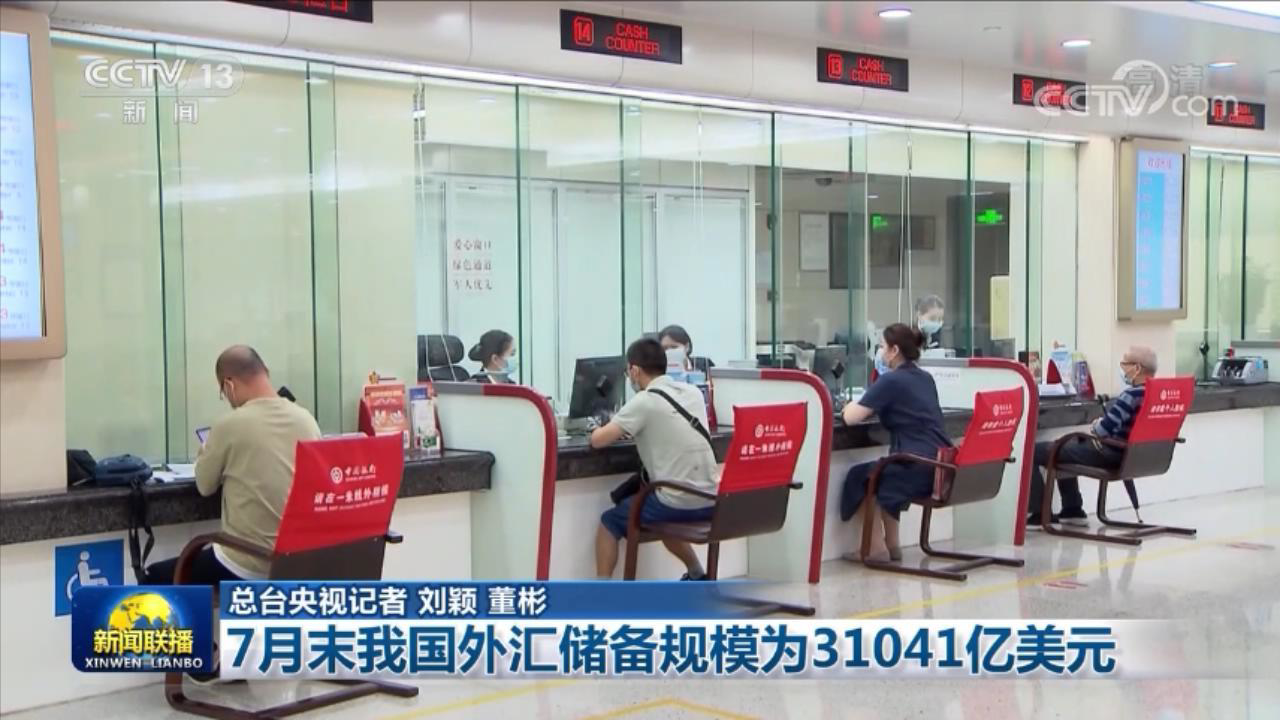 央视网消息(新闻联播):国家外汇管理局最新数据显示,7月末,我国外汇储备规模为31041亿美元,较6月末上升328亿美元,升幅为1.07%。我国外汇市场运行总体稳定,境内外汇供求基本均衡。