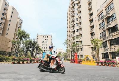 上海市静安区彭浦新村彭三小区五期旧房成套改造近期完成。据介绍,彭浦新村街道已完成彭五、彭七及彭三小区一到五期的旧房改造工程,使2797户居民受益。图为居民骑电动车经过彭三小区五期新建成的居民楼。新华社记者 方 喆摄