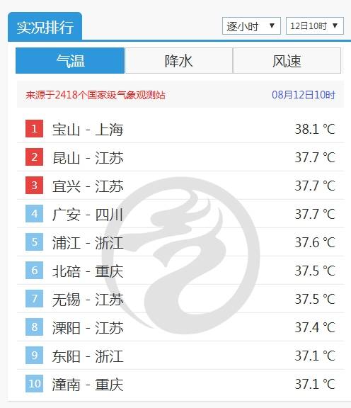上午10时,广安以37.7℃冲上全国高温排行榜第四。