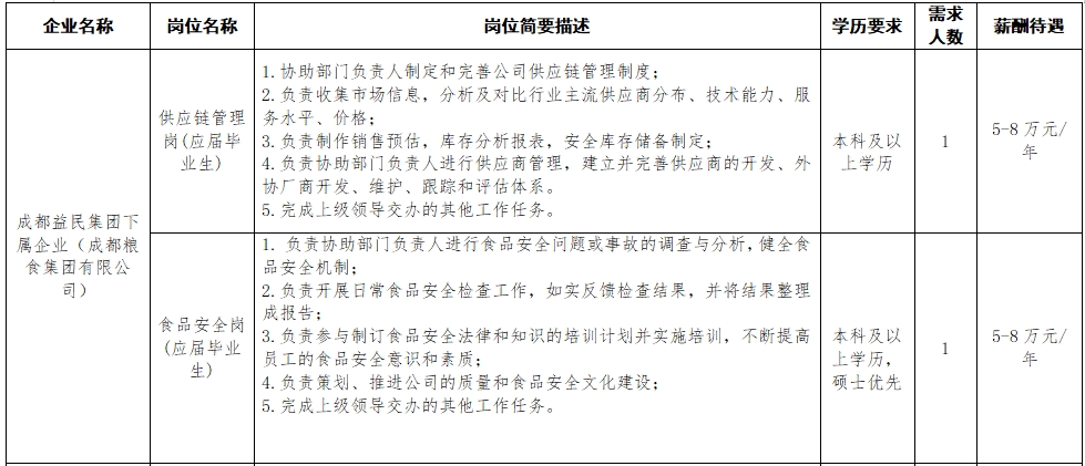 为深入实施“人才强企”战略,成都市国资委联合市属国有企业,重点面向高校毕业生为主的青年人才搭建就业平台,覆盖成都市重点产业,以建圈强链为导向进行招才引智,促进高校毕业生顺利就业。根据市人社局《关于开展2022年“百日千万网络招聘专项行动”的通知》部署安排,成都市属国有企业将于2022年8月开展“成都国企 ‘职’等你来”网络专项招聘活动。