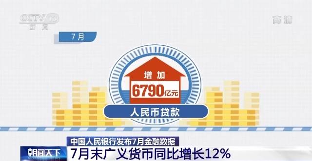 中国人民银行昨天(12日)发布7月金融数据。数据显示,7月末广义货币同比增长12%。