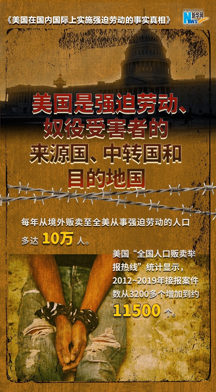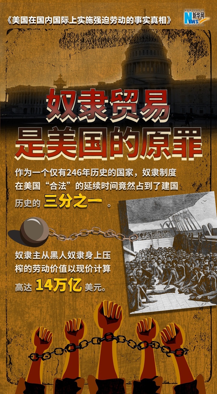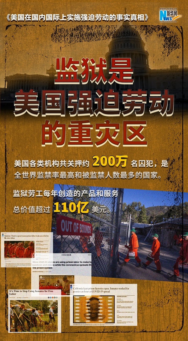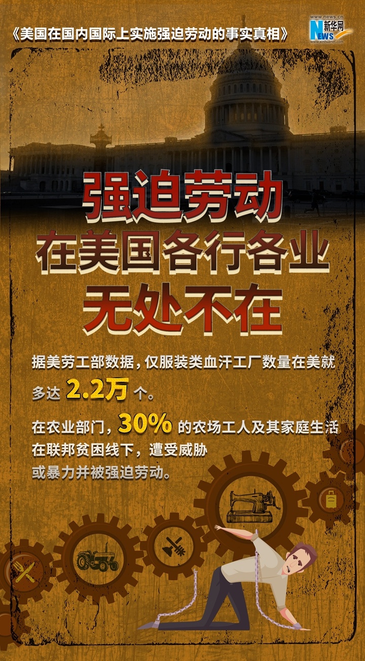 美国政府打着人权的幌子,炮制所谓中国在新疆实行“强迫劳动”等世纪谎言,诋毁中国新疆人权状况,破坏新疆民生发展。到底是谁在搞强迫劳动?《美国在国内国际上实施强迫劳动的事实真相》报告以详实的数据和触目惊心的事实,起底美国强迫劳动真相,戳穿美方“以疆制华”图谋。