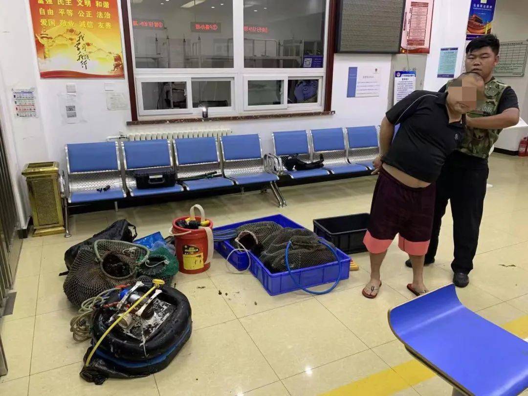 在派出所内,民警对查获的海珍品进行了清点称重。据统计,当晚于某某共盗窃紫海胆88斤、鲍鱼8斤、海参17根。