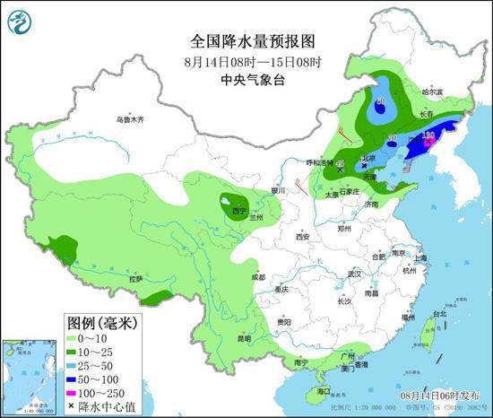 中央气象台预计,今天内蒙古中东部、山西北部、河北中北部、北京、天津、辽宁大部、吉林西部和东南部、山东北部及青海东北部等地有中到大雨,其中,内蒙古东南部、吉林东南部、辽宁中东部等地部分地区有暴雨,辽宁东部局地大暴雨(100~130毫米)。