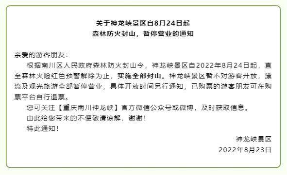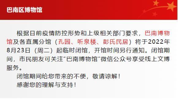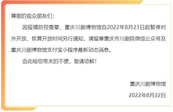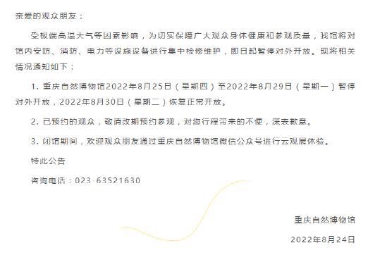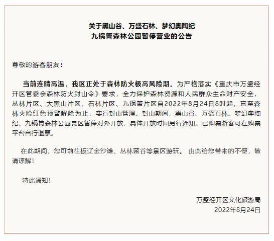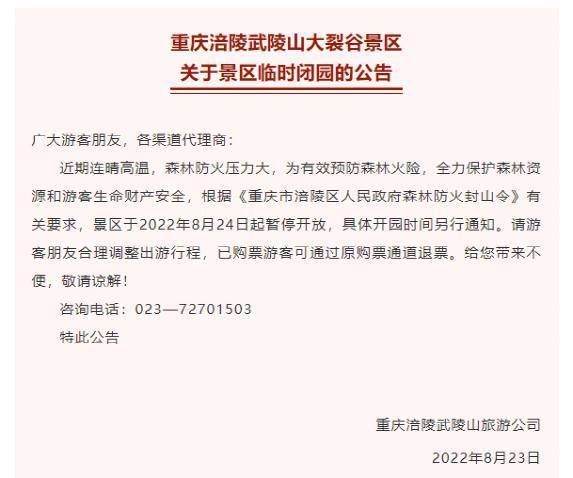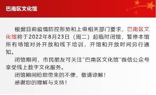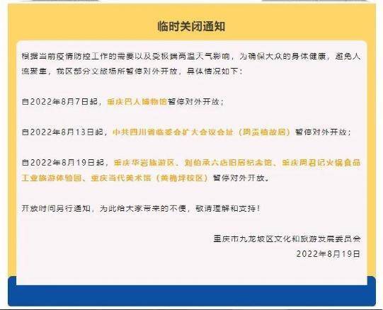重庆市文旅委今天(24日)发布了30余家景区、场馆临时关闭、暂停开放的通知。