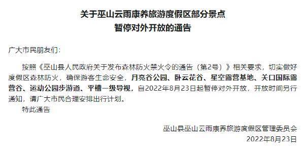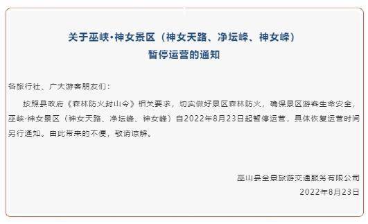 NO.17巫山县巫山云雨康养旅游度假区部分景点暂停开放