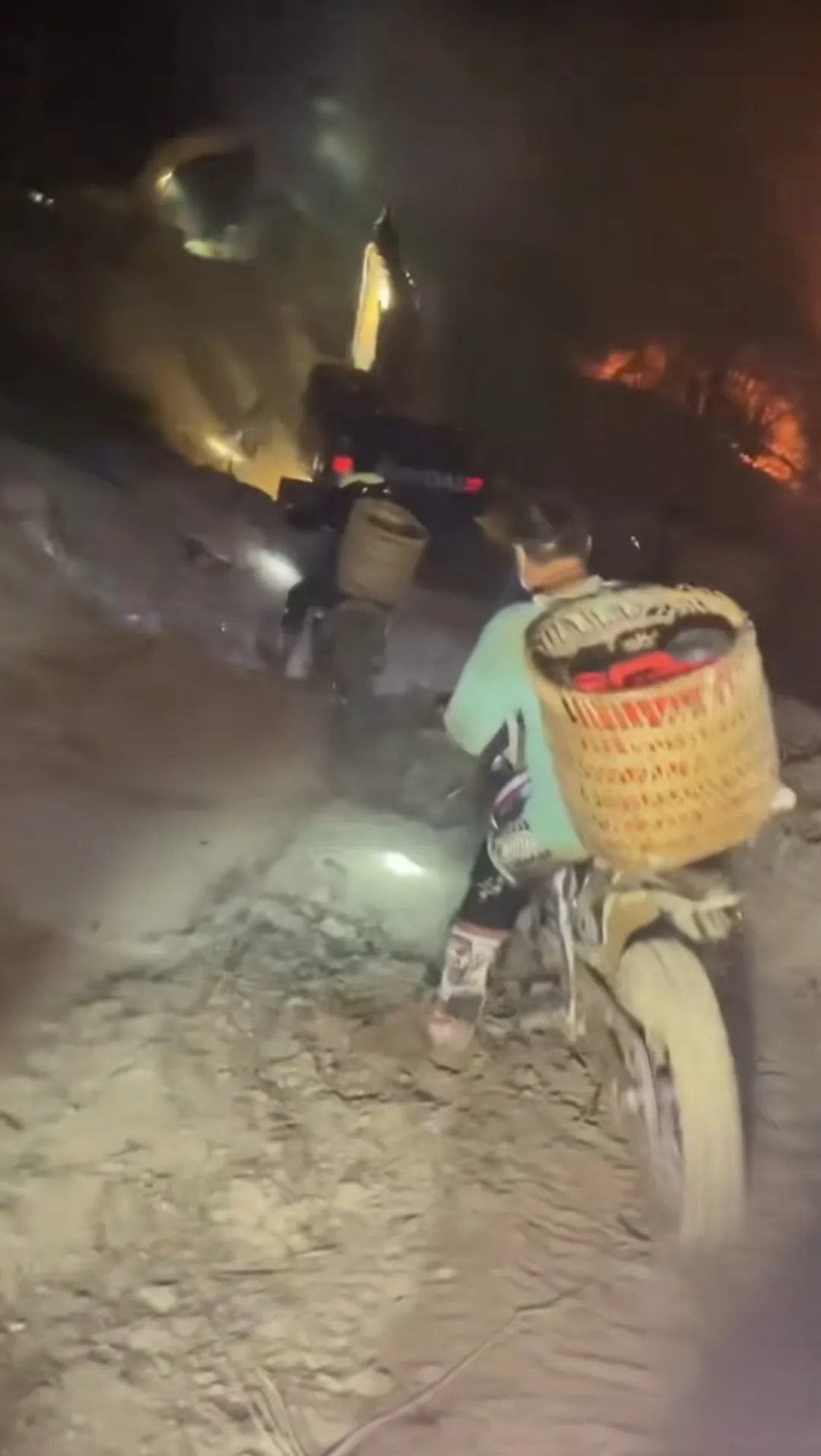 行进两三公里后,遇到挖掘机在前面开路,龙杰无法再往前骑。他掉头回去,准备呼叫更多越野摩托车手来帮忙。