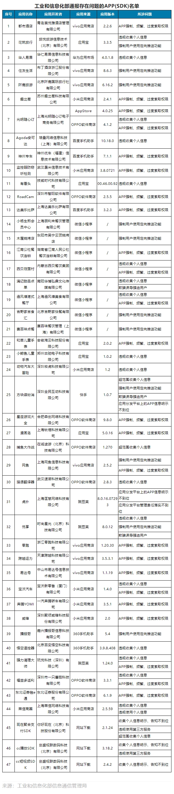 工业和信息化部表示,相关APP及SDK应在9月5日前完成整改落实工作。逾期不整改的,将依法依规组织开展相关处置工作。