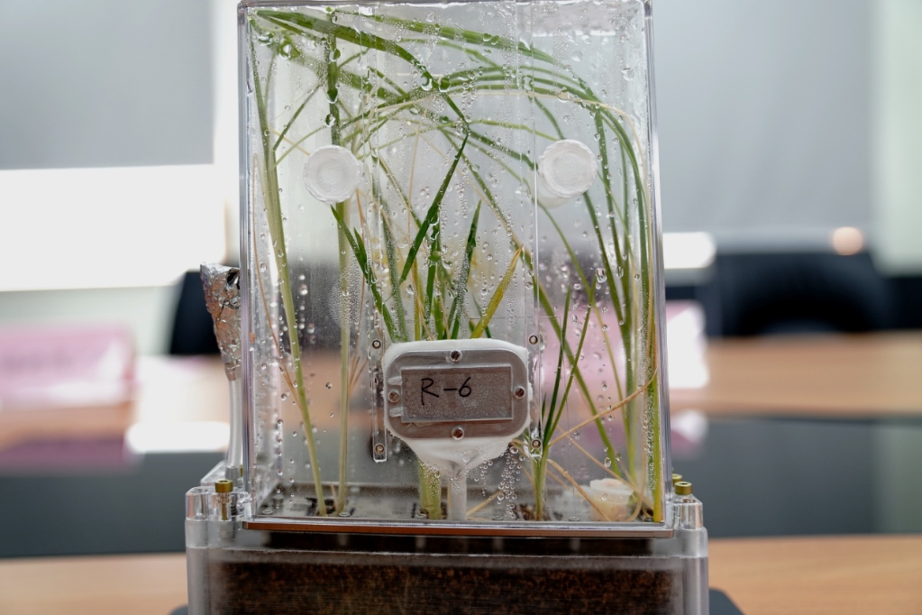 8月29日,在中国科学院分子植物科学卓越创新中心拍摄的“太空同款”水稻培养单元。新华社记者 张建松 摄
