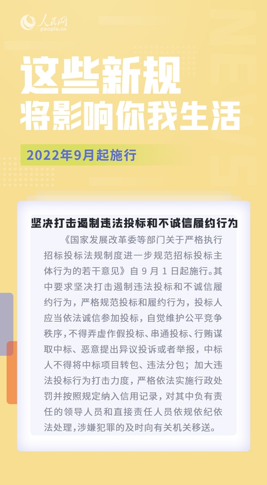 明确哪些情形需要申报数据出境安全评估;规定中小学校不得擅自扩大收费范围、提高收费标准;打击遏制违法投标和不诚信履约行为……9月,这些新规施行,将影响你我生活。