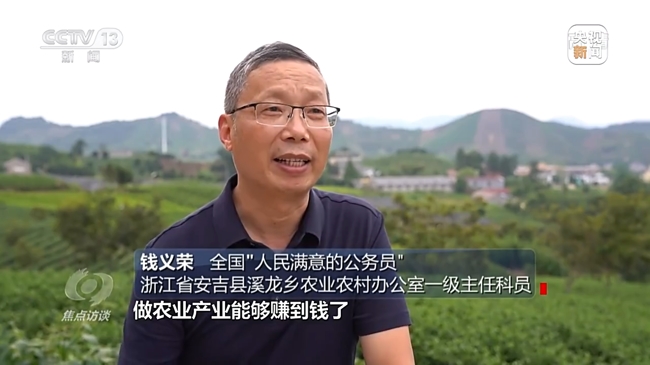 全国“人民满意的公务员” 浙江省安吉县溪龙乡农业农村办公室一级主任科员 钱义荣:让老百姓过上更美好的生活,一直是我们的心愿,看到老百姓把茶叶种好了,做农业产业能够赚到钱了,老百姓也过得开心了,我也很高兴,也很有成就感。