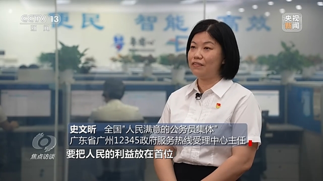 全国“人民满意的公务员集体” 广东省广州12345政府服务热线受理中心主任 史文昕:写在最醒目的位置,就是要时刻提醒自己,要把人民放在心上,要把人民的利益放在首位,通过接好每一通电话、分好每一个工单、办好每一个诉求,让市民满意。
