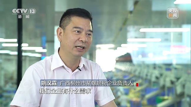 全国“人民满意的公务员” 广西柳州市商务局党组成员、副局长 贾建功:我们经过很多门店走访和调研,我们就到了江南大学、四川大学等食品科研机构,让他们帮助我们开发出比较适合柳州口味以及柳州粉特征的方便速食产品。