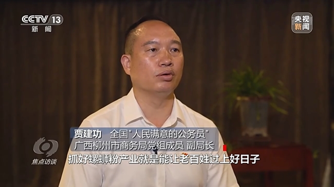 全国“人民满意的公务员” 广西柳州市商务局党组成员、副局长 贾建功:全心全意为人民服务的宗旨是永远不变的,抓好螺蛳粉产业就是能让老百姓过上好日子,提升老百姓生活水平,老百姓过上好日子,就是对我工作最大的认可。