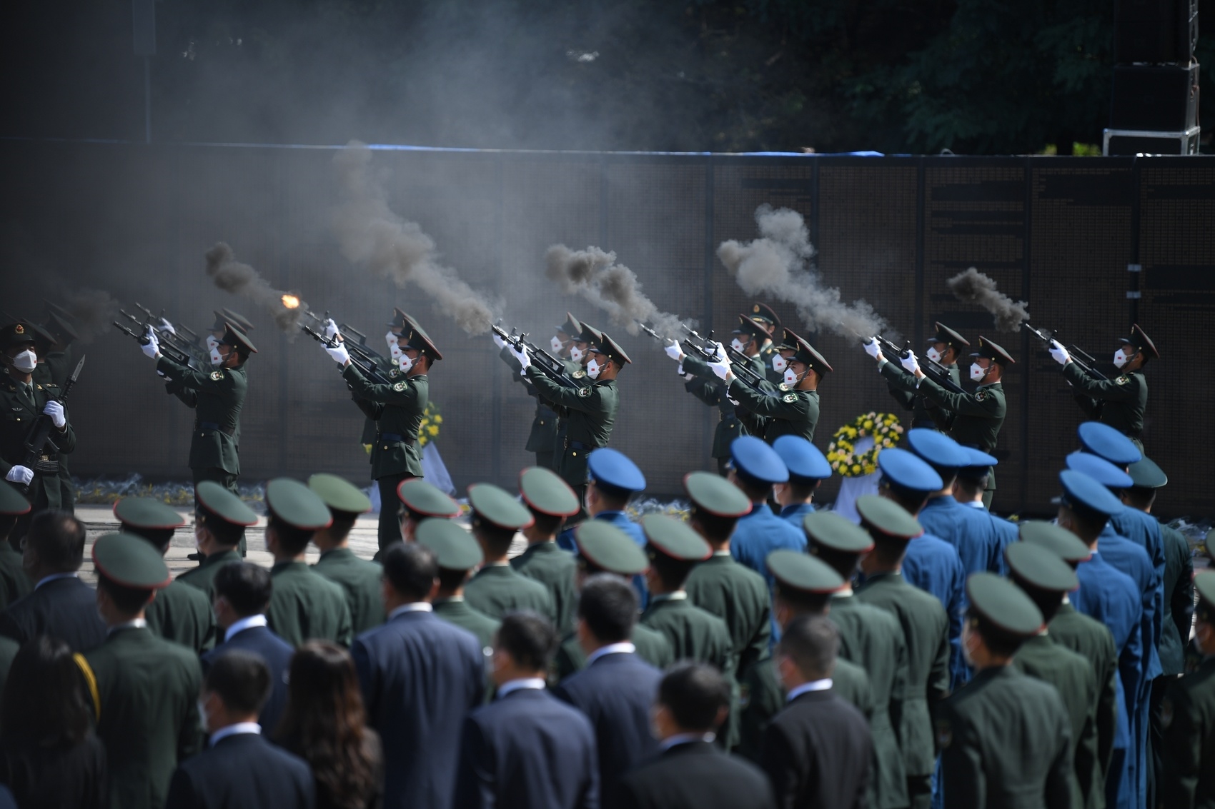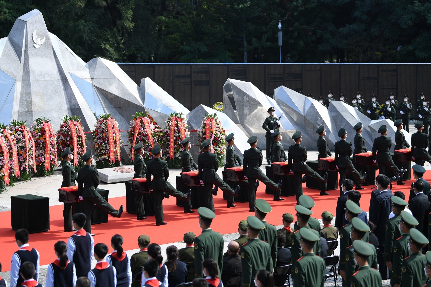 9月17日上午,沈阳抗美援朝烈士陵园,碧空如洗,松柏如肃。第九批在韩中国人民志愿军烈士遗骸安葬仪式在此举行,88名为国战斗牺牲在异国他乡的志愿军英烈在祖国的大地上安息。