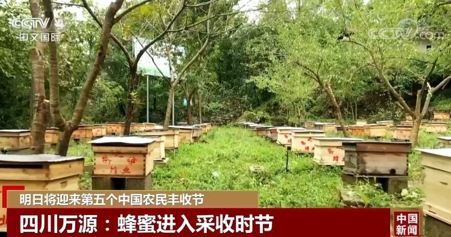 在四川万源,蜜蜂养殖业一直是当地的特色产业之一,今年从9月中旬开始,蜂蜜就正式进入采收的时节,预计将会持续到10月底。在万源沙滩镇红旗村的蜜蜂示范养殖场,养蜂人正在忙着取蜂蜜和割蜜,每个蜂箱最多可以采集到近百斤蜂蜜。蜂蜜产品不仅畅销国内,还远销新加坡、马来西亚等海外市场。