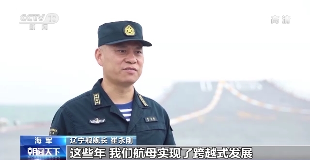 辽宁舰舰长 崔永刚:这些年,我们航母实现了跨越式发展,可以说中国特色航母之路在现实中成果得到检验。现在国产航母山东舰的使命任务,也在不断拓展、快速发展,首艘弹射型航母福建舰正蓄势待发。我们相信在不久的将来,“三航母”将会在更加广阔的国际舞台上展示我们的强大威力。