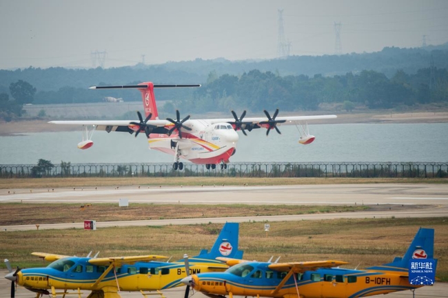 9月27日,“鲲龙”AG600M在漳河机场降落。新华社记者 伍志尊 摄